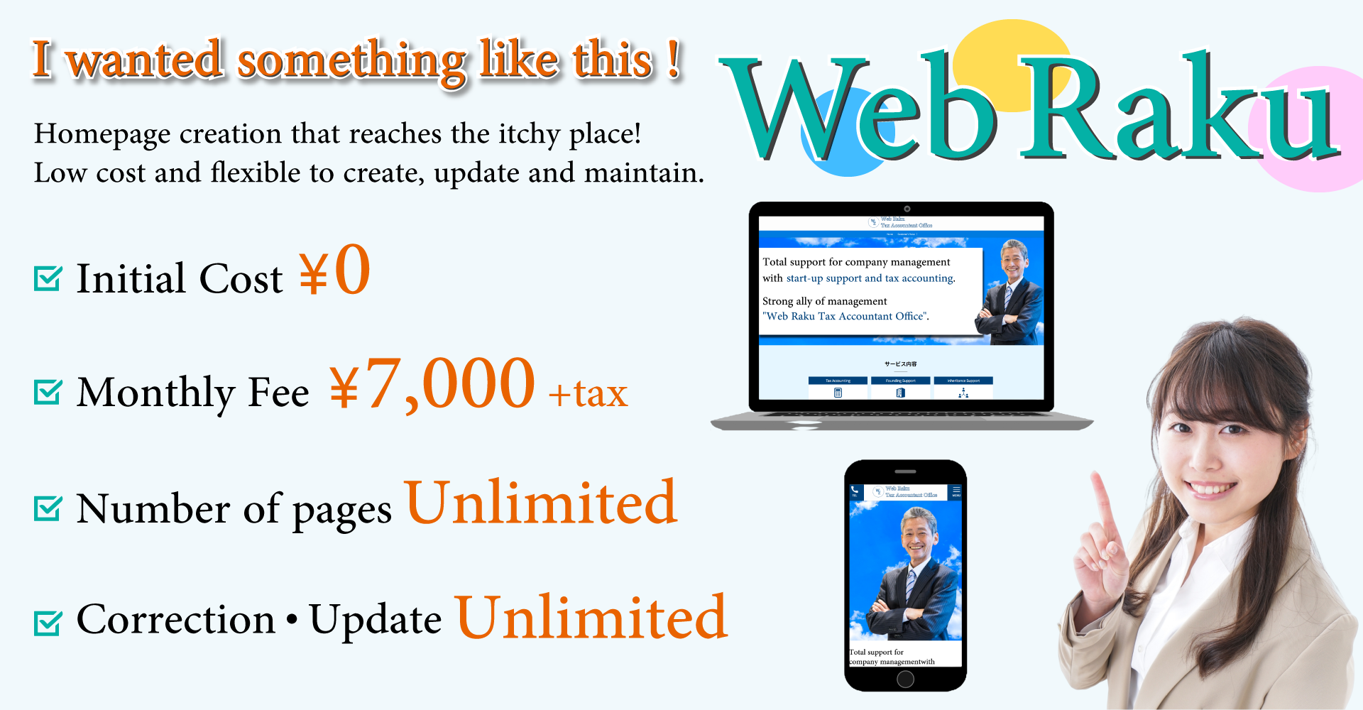 Web Raku started providing services based on the concept of “providing a website that satisfies customers at an amazingly low price.”